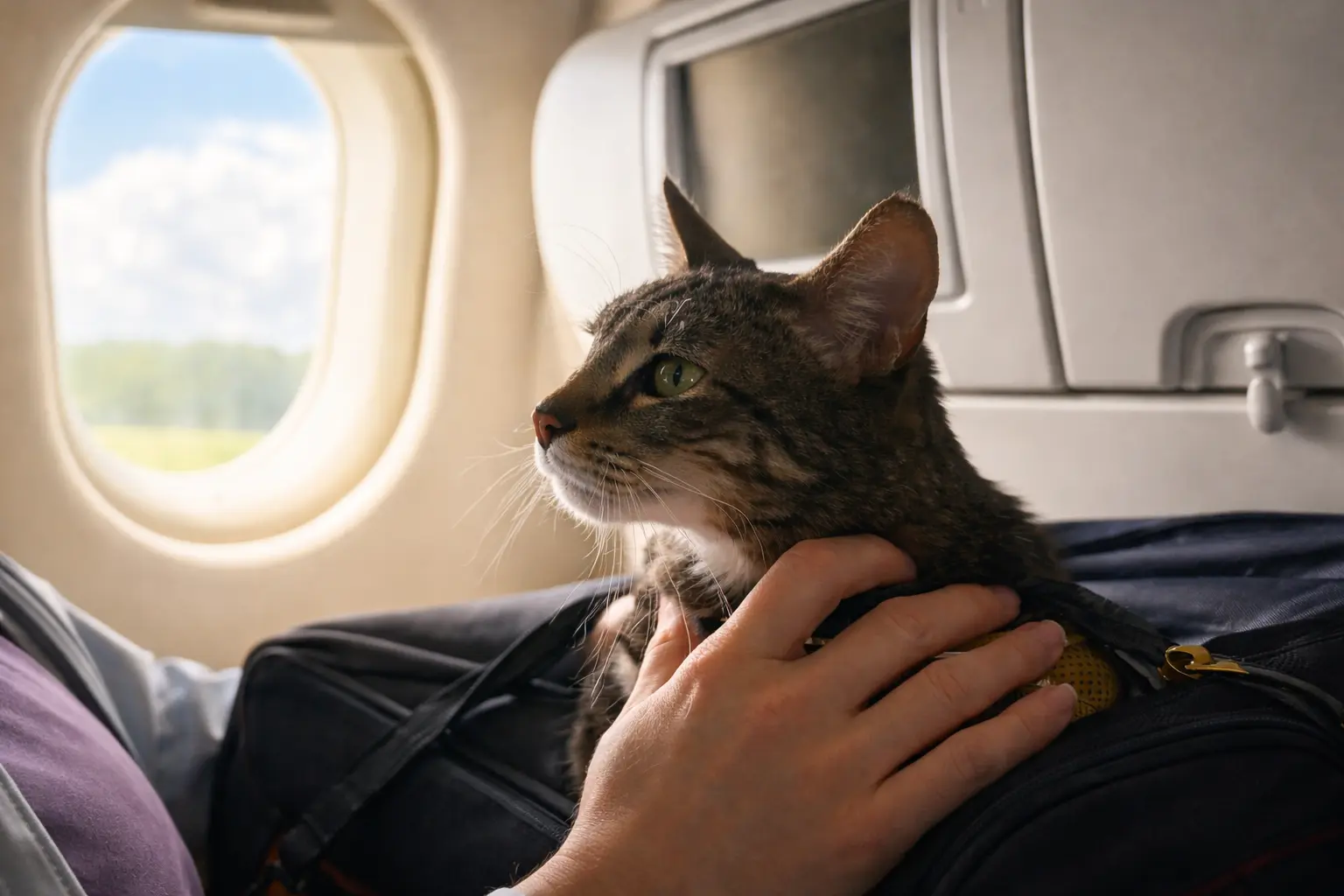 In-cabin flight nanny for cats transporting a cat across the country safely